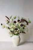 Den består af flere af mine absolutte blomsterfavoritter, og en stor kontrast mellem de mørke og lyse blomster.