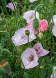 Papaver rhoeas 'Mother of Pearl' er et mix af smukke pastelfarvede røde og rosa perlmorsskinnende kornvalmuer med både enkle, semidobbelte og dobbelte blomster.